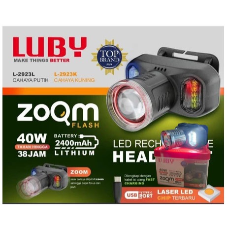 Senter Kepala Zoom Laser LUBY Jarak Jauh LED 3 Mode Cahaya