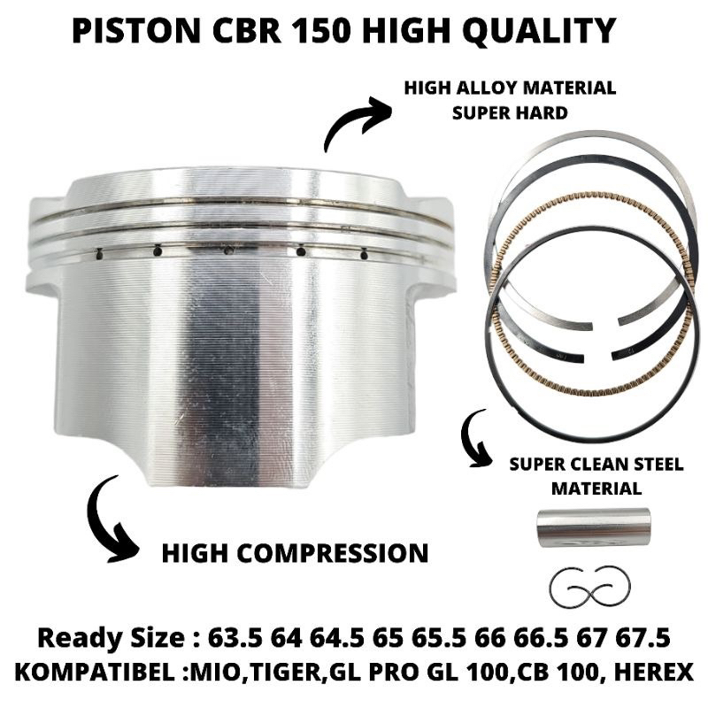 (BISA )SEHER PISTON CBR 150 CB150 R STANDAR Oversize 50 100 150 200 250 300 350 400 63.5 64 64.5 65 65.5 66 66.5 67 67.5