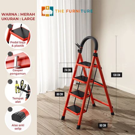 Tangga Lipat Alumunium Multifungsi Baja Ringan Tangga Besi 3 / 4 Step Household Steel Ladder Murah Premium