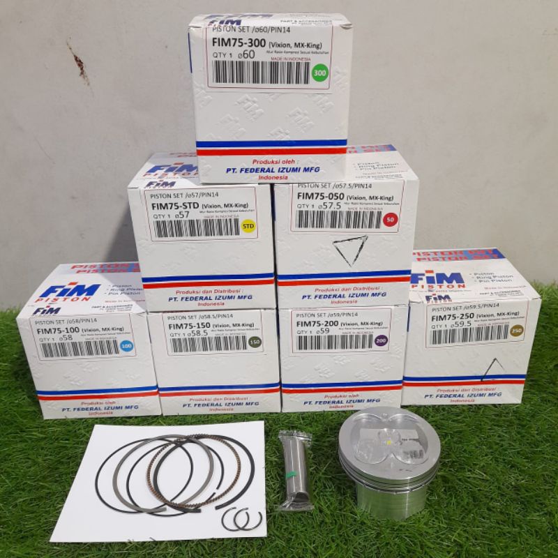Piston Set Fim75 Fim 75 Vixion Mx King untuk bore up 57 57.5 58 58.5 59 59.5 60 Pin 14 Thelereng_Garage Shop