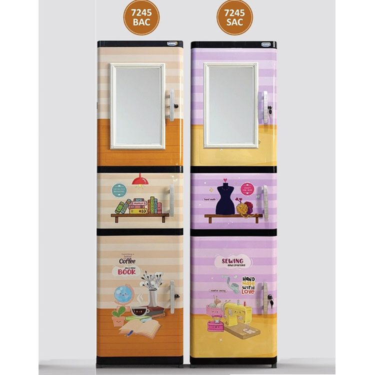 Nandos Lemari Pakaian Baju Naiba Nacase Round 7044 7045 7245 Murah Motif Bunga Cermin Kaca Kunci