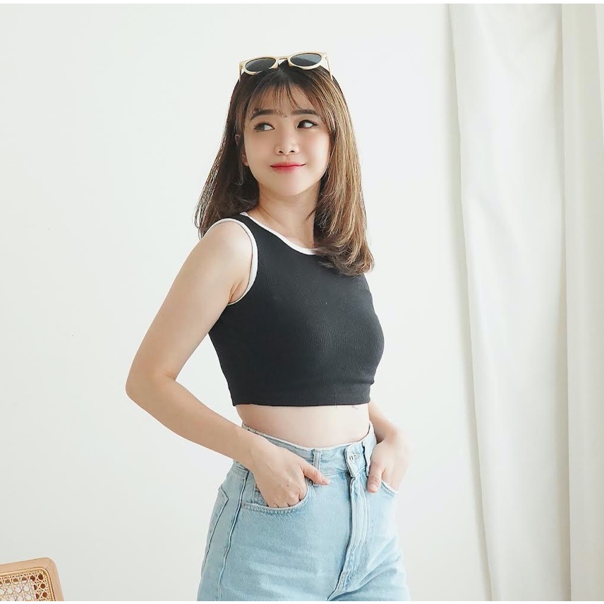 CAVALU Basic Knit Tank Top Kombinasi Korean Tanktop Crop Top Baju Atasan Wanita 121