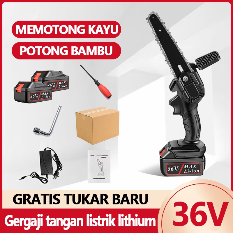 Gergaji Listrik Rantai Elektrik Mini Portable 36 volt Gergaji Baterai Genggam Lithium Charger