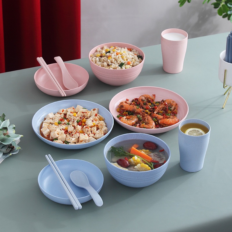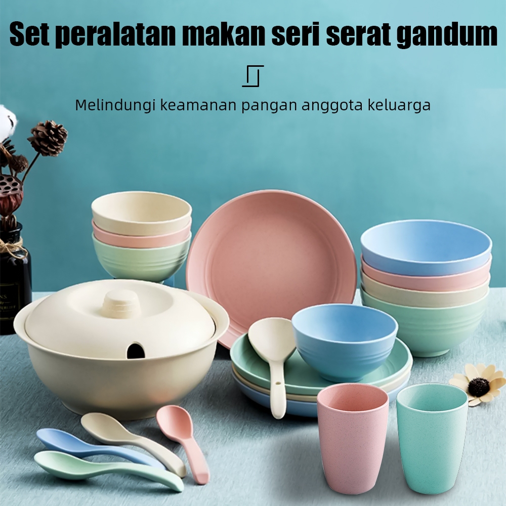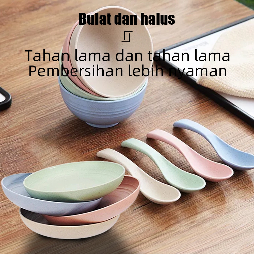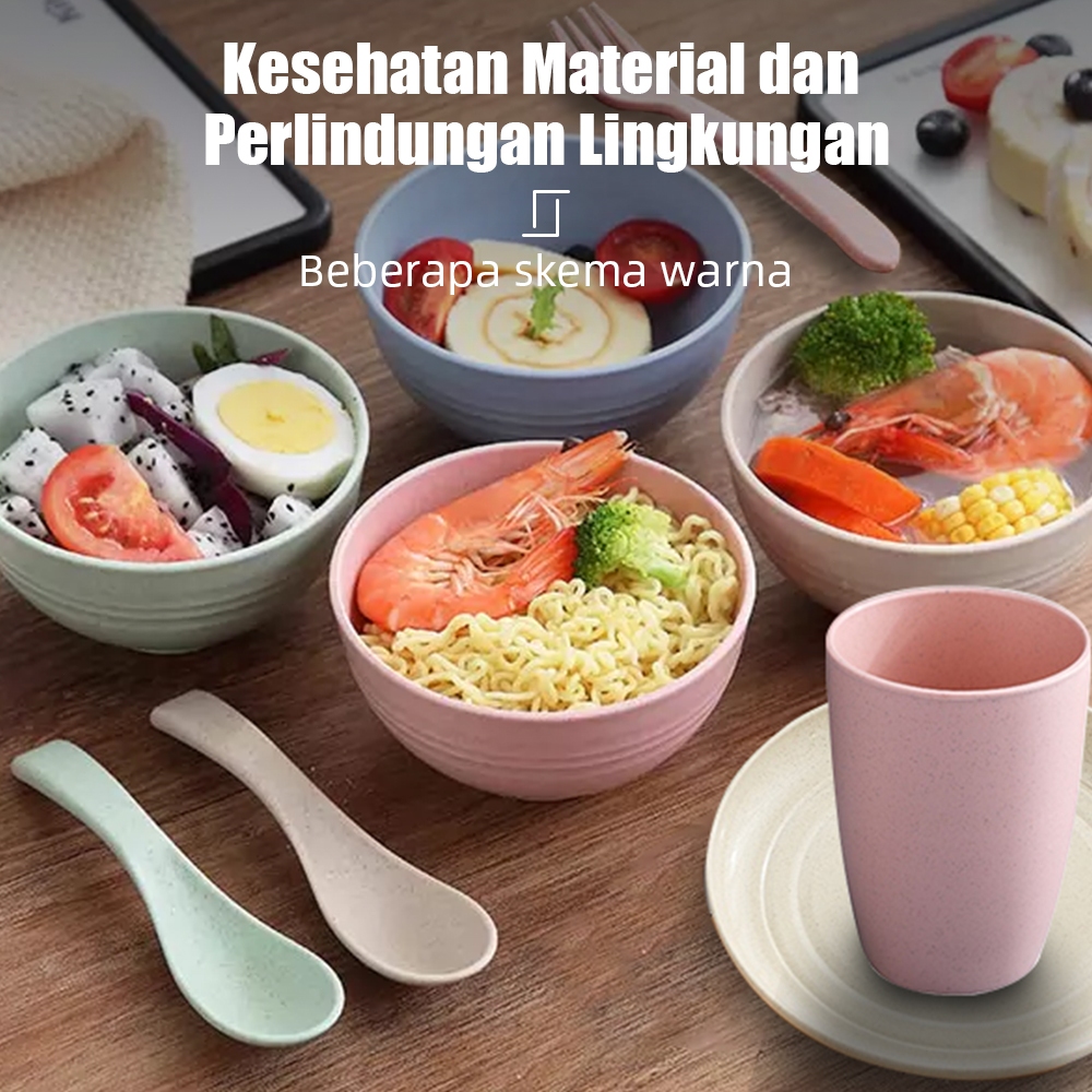 Matougui Gandum 7 Pcs Peralatan Makan Set Mangkuk / Piring / Sendok Peralatan Piring Makan Keluarga