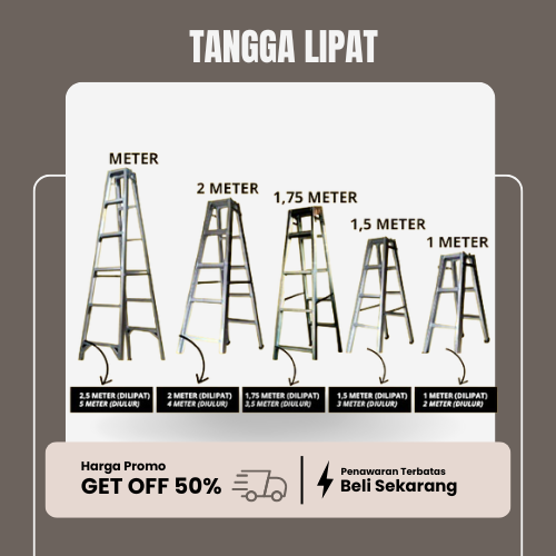 Tangga Lipat Alumunium Multifungsi Tangga Baja Ringan Kuat Ukuran 2.5 Meter Tangga Portable Rumah Tangga Serbaguna