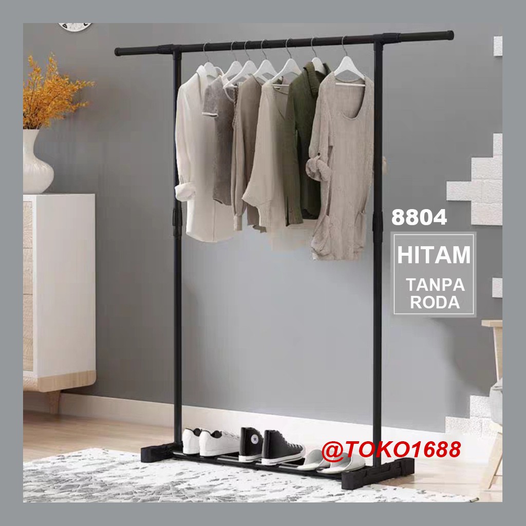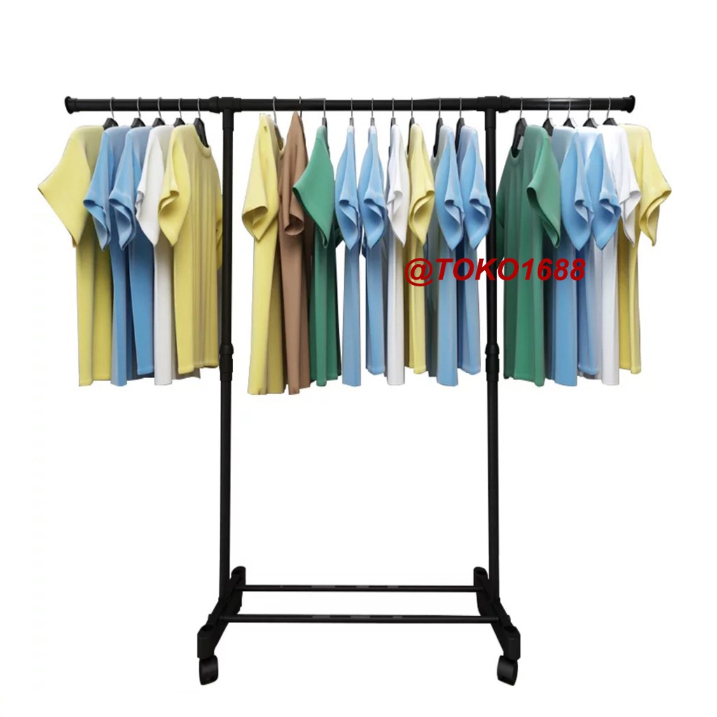 Stand hanger single rak Serbaguna dengan 4 roda hitam