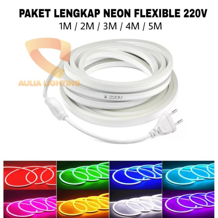TERMURAH Paket Lengkap Lampu Neon Flex 220v Flexible 1 2 3 4 5 meter Waterproof Strip Outdoor Dekorasi kamar
