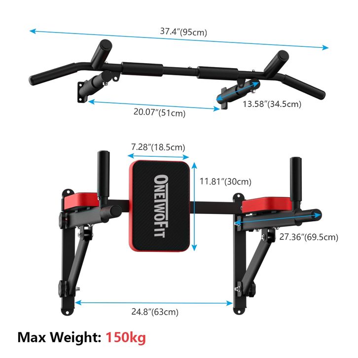 OneTwoFit Multifunctional Wall Mounted Pull Up Bar Chin Up bar Fitness Equipment