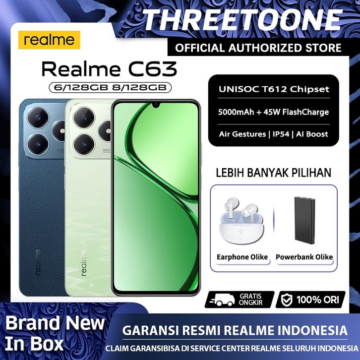Realme C63 6 128Gb 8 128Gb 45W Fast Charge Air Gestures Ip54 Tahan Air Ai Boost Handphone Baru 1Jutaan Murah