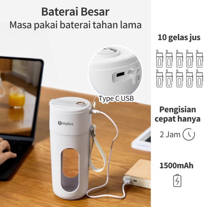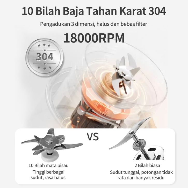 Simplus Juicer Portable 400ML Mini Blender Cordless Jus Ice Crusher 10 Bilah mata pisau