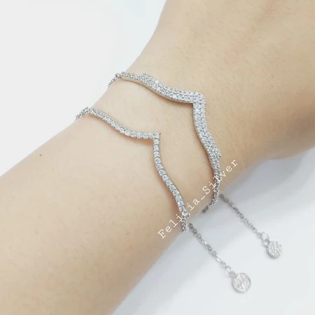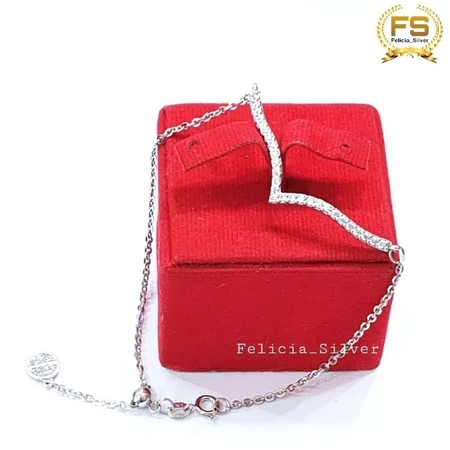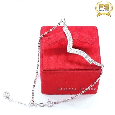 GELANGG PERAK ASLI SILVER WANITA 925 LAPIS EMS PUTIH MODEL SERUT FUJI, GELANGG SERUT FUJI PERMATA - PERHIASAN PERAK ASLI