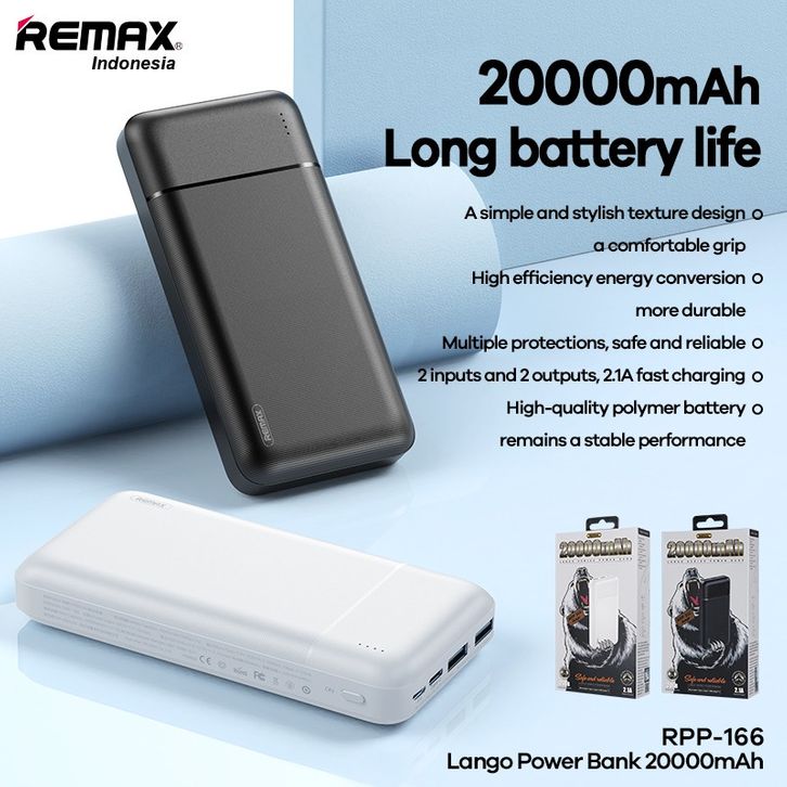 Remax 20000Mah Powerbank 20000Mah 2.1A Rpp 166 Lango Series