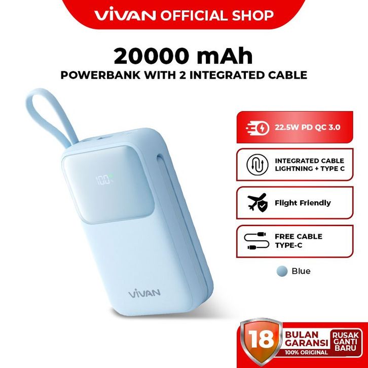Vivan Powerbank 20000Mah 22.5W Fast Charging Pd Qc 3.0 Led Display 4 Port Vpb P20 Garansi 18 Bulan