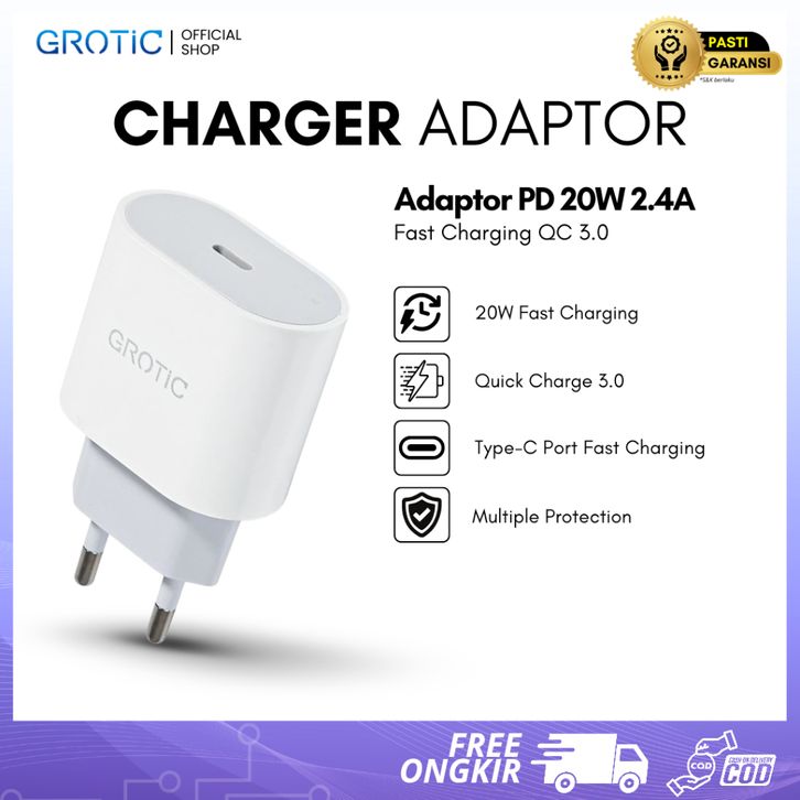 Grotic Charger Adaptor Pd 20W 2.4A Kepala Charger Fast Charging Qc3.0 Type C Lightning