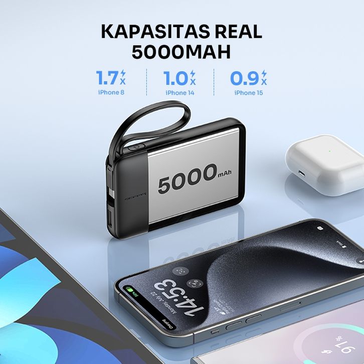 Robot Powerbank Mini 5000Mah Real Capacity Fast Charging 18W With Cable Type C Power Bank Portable Rt07 Original Garansi