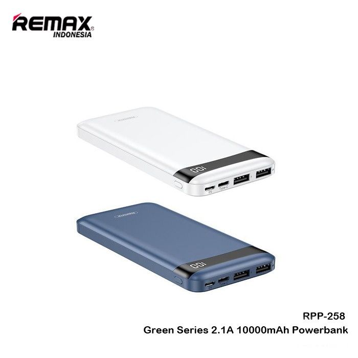 Remax Powerbank 10000Mah Green Series 2,1Ampere Flight Friendly With Led Display 2 Output Usb Rpp 258