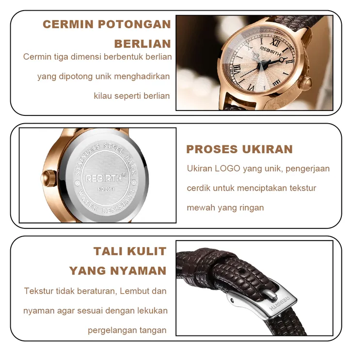 REBIRTH Jam Tangan Wanita Korea Antik Panggilan Mini Anti Air Tali Kulit Jam Tangan Cewek