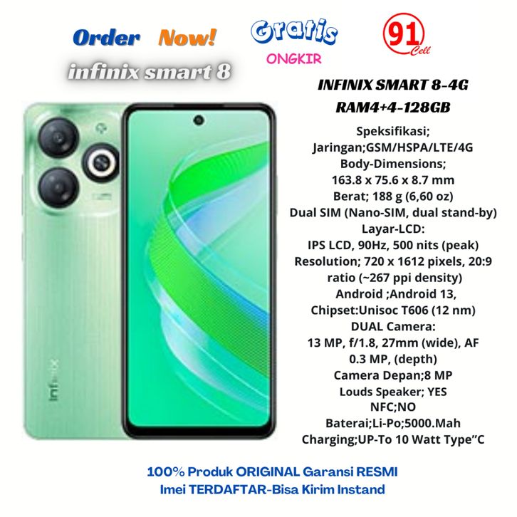 Infinix Smart 8 Ram4 128Gb Ram4 64Gb Garansi Resmi 1 Tahun Hp Murah 1 Jutaan Dp Rp 0