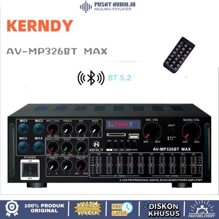 Amplifier Kerndy Bluetooth 5.2 EQ Audio AV326BT MAX Channel 2.1 Full Bass Subwoofer Amplifier Karaok Home Theater Kerndy