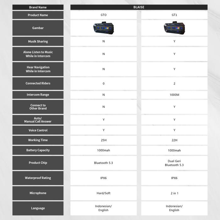 BLAISE GT1 Intercom Helm Headset Helm Waterproof Musik Sharing Interkom Mic Helm Intercom 2 orang Bluetooth Helm