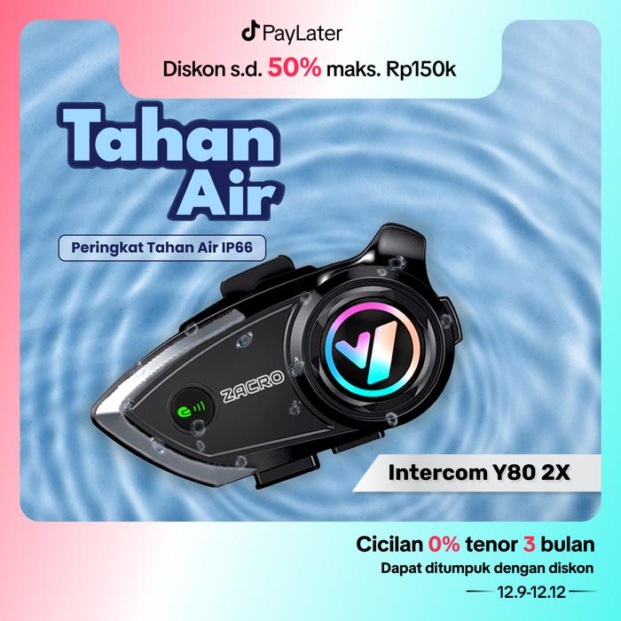 ZACRO Y80 2x Intercom helm Bluetooth Chip Qualcomm 5.0 FM Radio intercom dua arah dan Peringkat tahan air IPX6