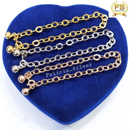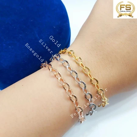 GELANGG PERAK ASLI SILVER WANITA 925 LAPIS EMS MODEL RANTAI NORI UKIR - PERHIASAN PERAK ASLI