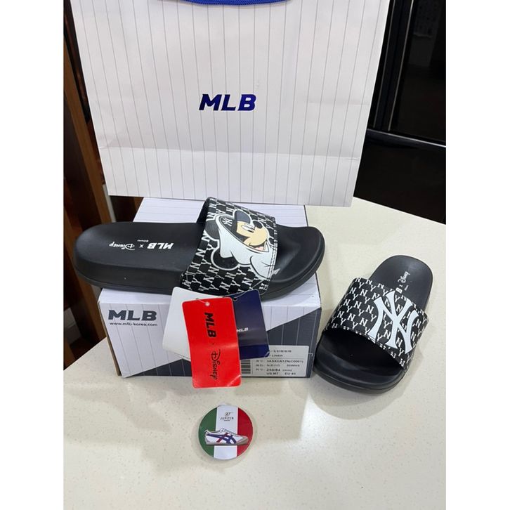 SANDAL SLIDE MLB X DISNEY YANKEES BLACK WHITE TERMURAH
