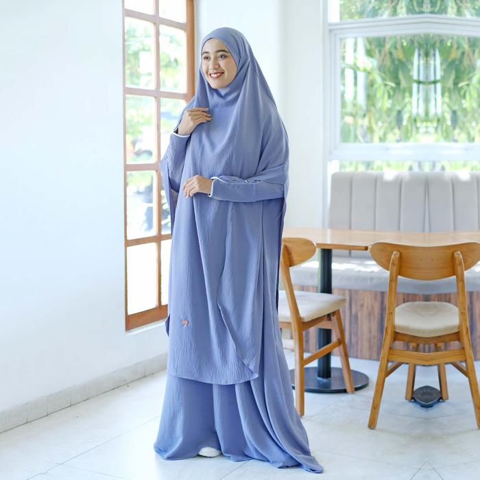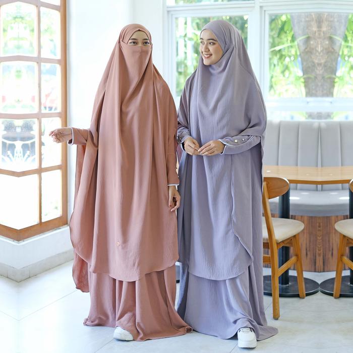 Aviza Hamida Set French Khimar Long 4 look Fabric Crinkle Airflow Gamis Muslim Wanita Syari Crinkle Harian Arab Nyaman