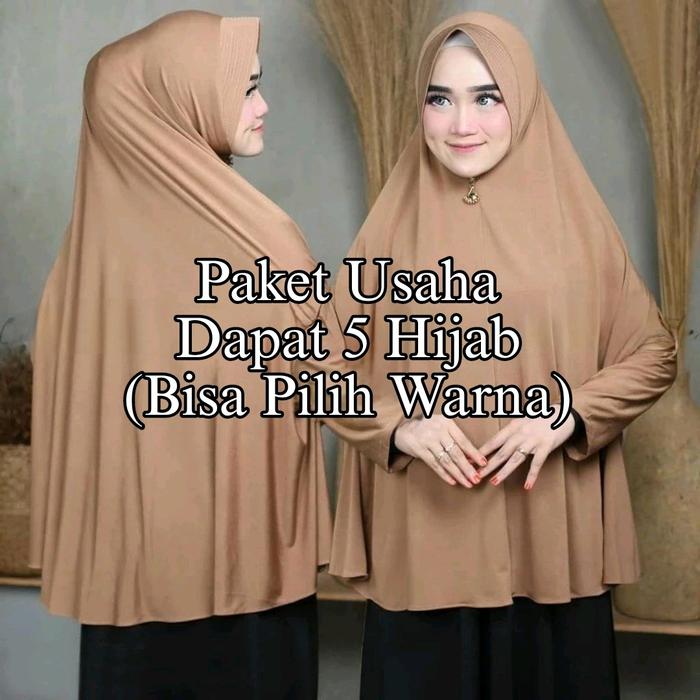 PAKET USAHA DAPAT 5 HIJAB ANJANI JUMBO SYAR'I PREMIUM Kerudung Bergo Lengan Tangan Polos Ped Antem Terbaru Best Quality