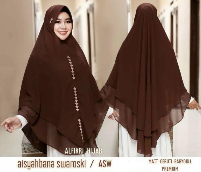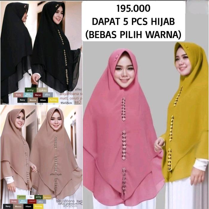 PAKET USAHA DAPAT 5 PCS HIJAB JUMBO 2 LAYER SWAROVSKI KHIMAR SYAR'I AISYAHBANA CERUTY - -,