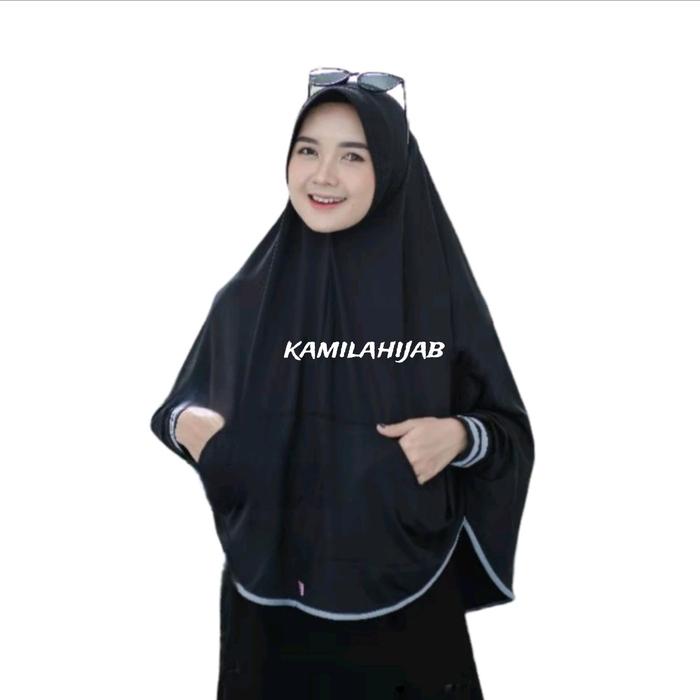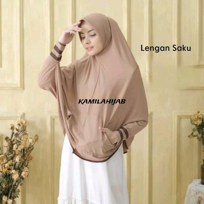 TERLARIS!!JUMBO HIJAB LENGAN SAKU LIST JERSEY PREMIUM Jilbab Instan Lengan Tangan Panjang Terbaru Fashion Muslim Jumbo