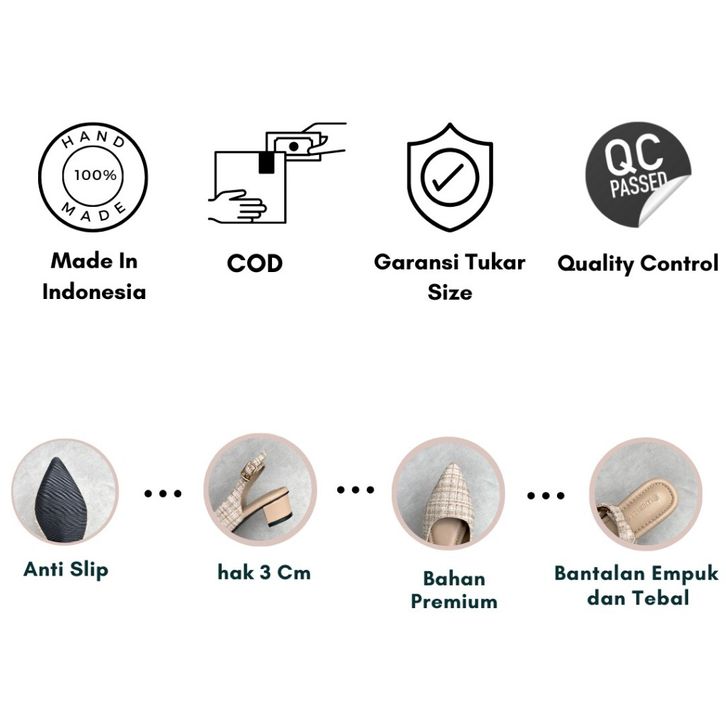 LOUIS Mules Hak 3cm Wanita Kekinian Korean Style (Tersedia Size 36-41)