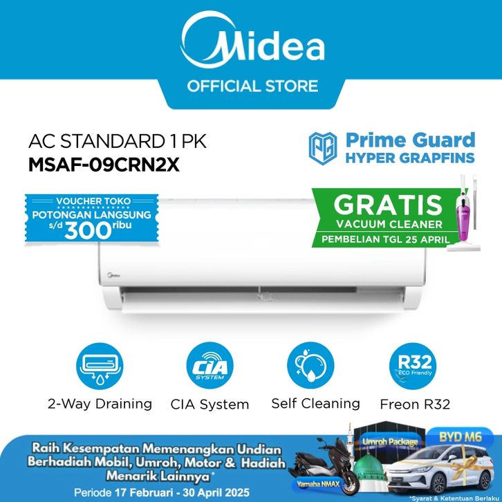 Midea AC Standard 1 PK R32 Series MSAF-09CRN2X (Unit Indoor & Outdoor)
