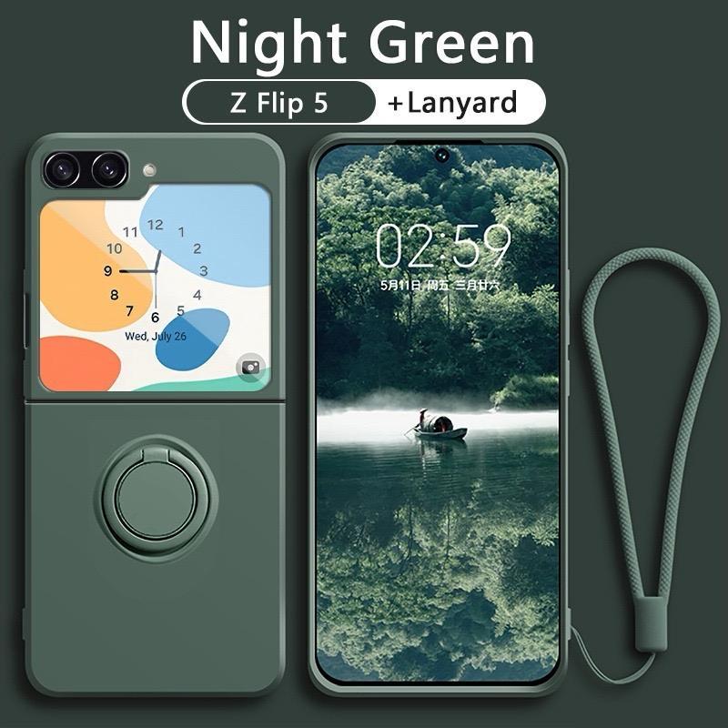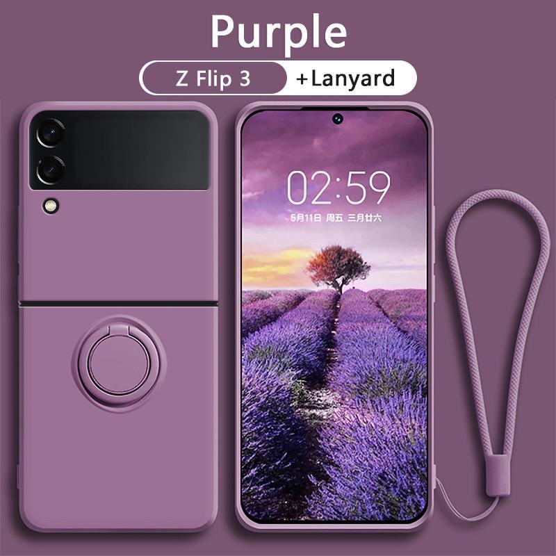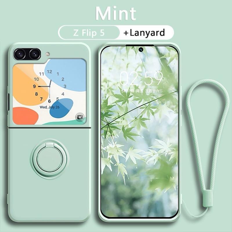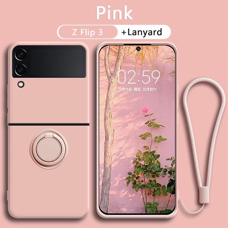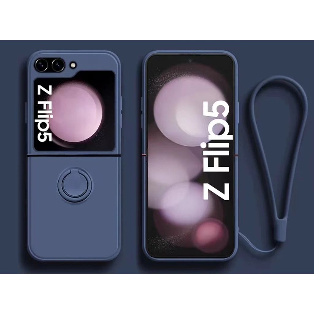 (FLASH SALE)Silicone Candy Case + Ring dan Tali Samsung Z Flip 3 Z Flip 4 Z Flip 5 Z Flip 6 With Lanyard
