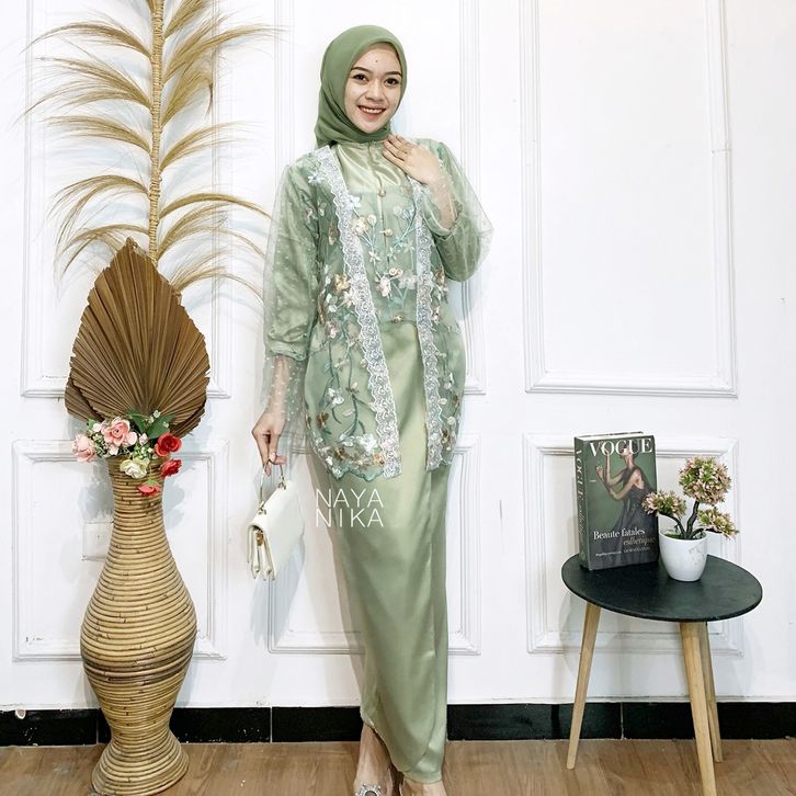PROMOOne Set Kondangan KIANA Kebaya Kutu Baru Tulle Garden Dotty Mix Velvet Halus Set Kebaya Modern BUSUI