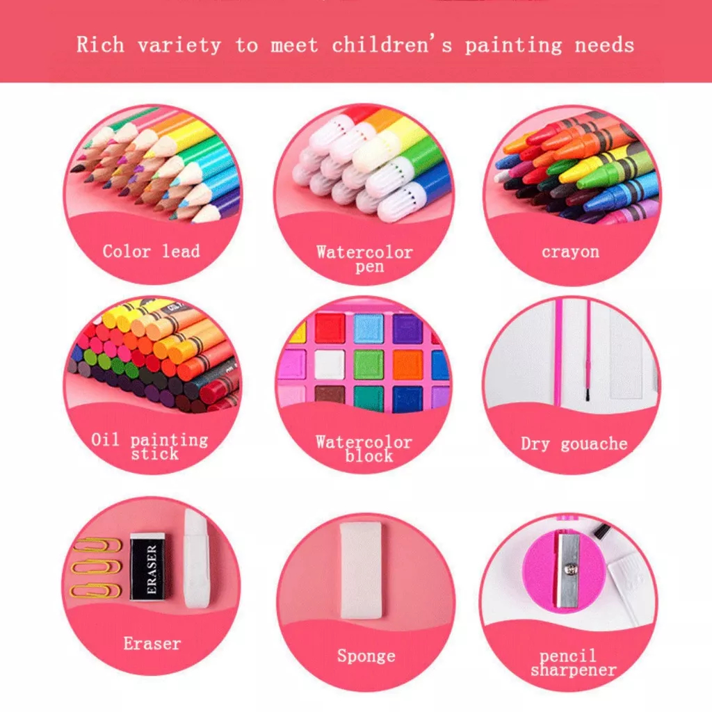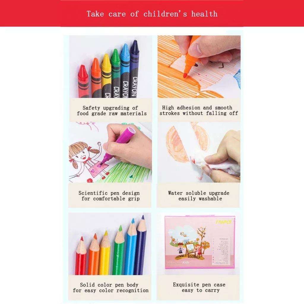 Art Full Set Crayon 208 pcs / Krayon Alat Lukis Anak Pensil Warna Cat Air Perlengkapan Mewarnai Set 150 pcs / Set Meluki