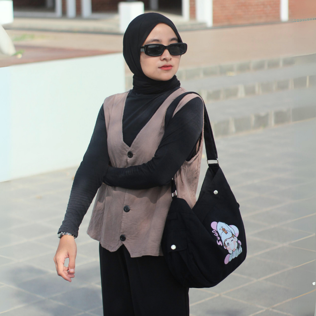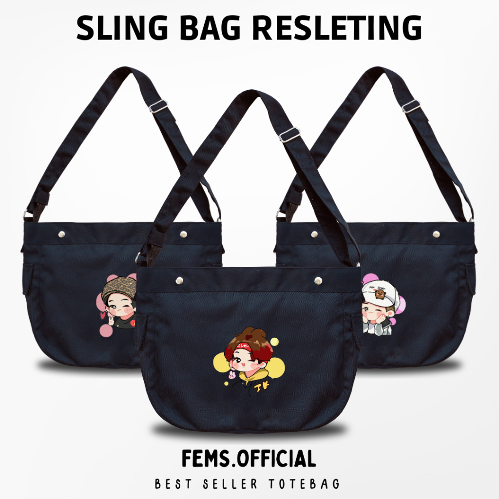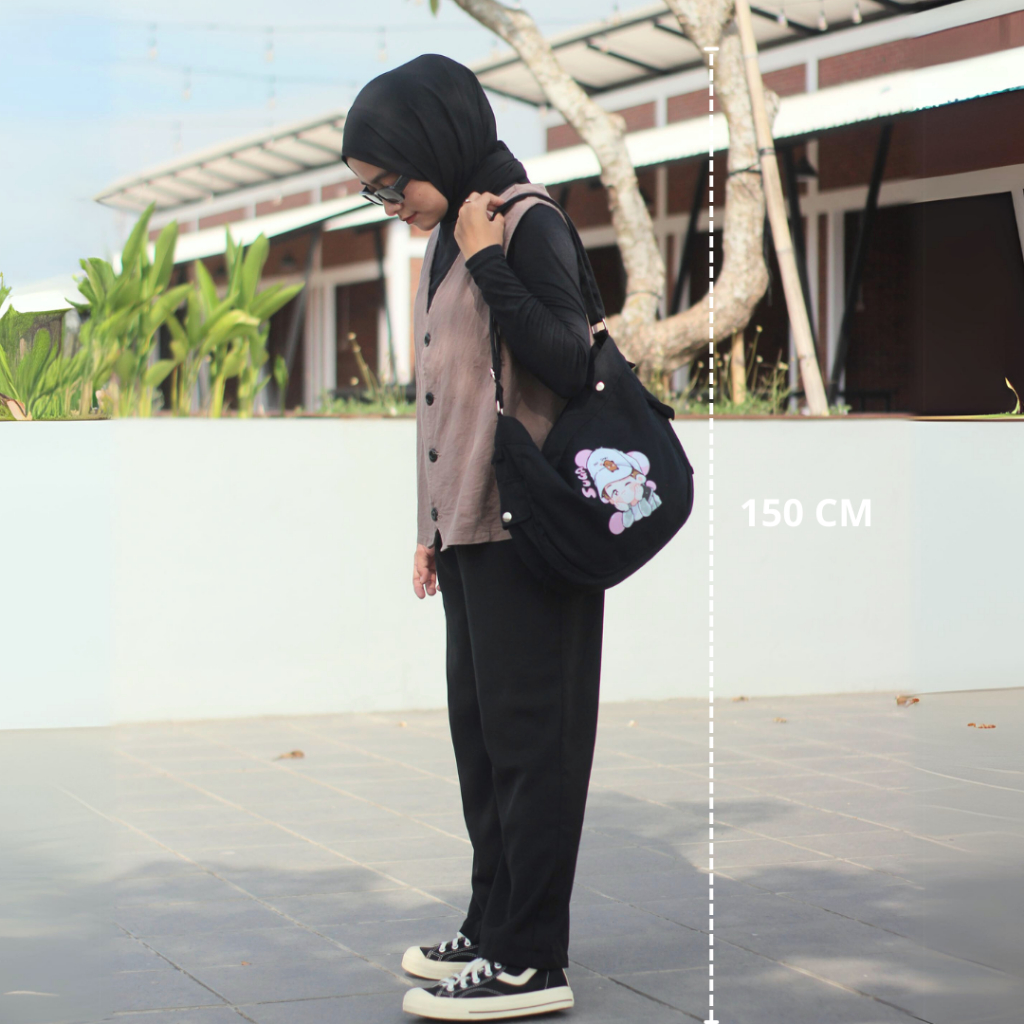 Tas Selempang Kanvas Hitam Korean Style Sling Bag Tebal Premium Slingbag Resleting KPOP