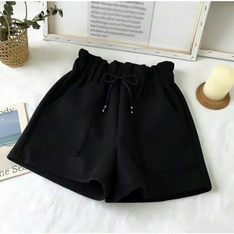 CELANA PENDEK WANITA KOREA HIGH WAIST AKSEN VARIASI TALI