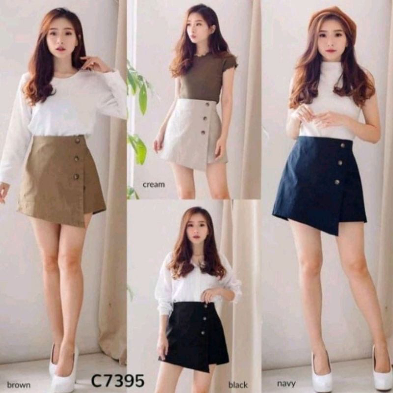 Skort Celana Pendek Wanita Hotpants Model Rok Celana Kancing Depan Bahan Katun Drill