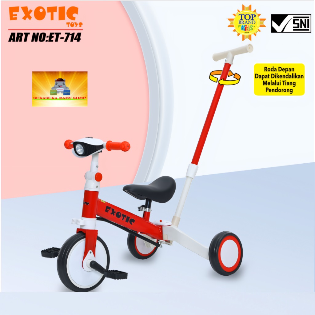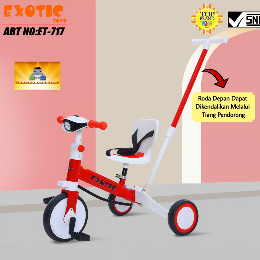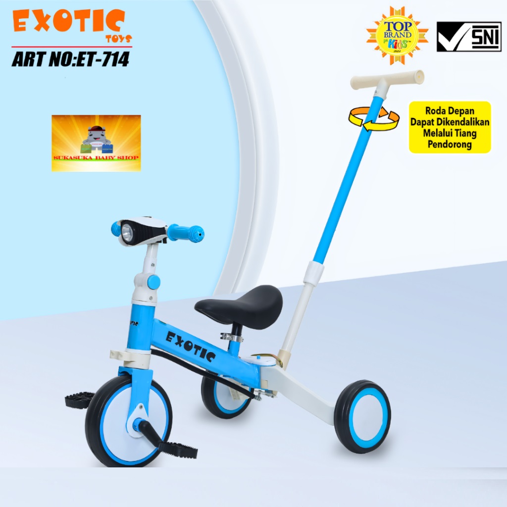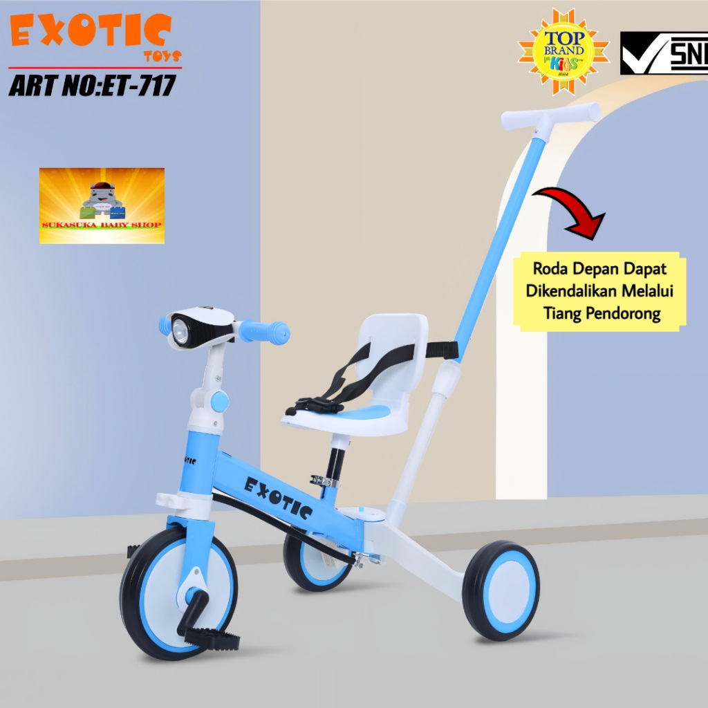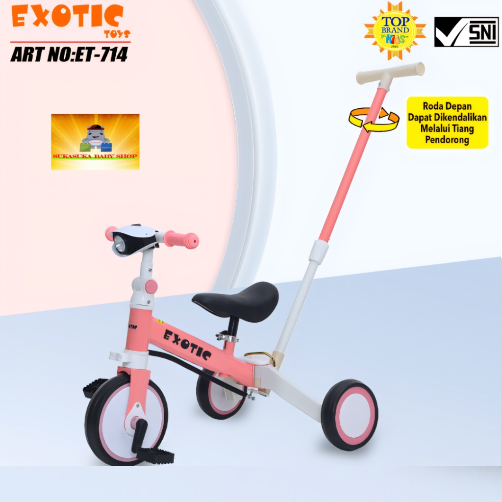 Sepeda Roda 3 Exotic Toys ET 714 / 717 Balance Bike Tricycle Push 4in1 Dengan Dorongan Belakang