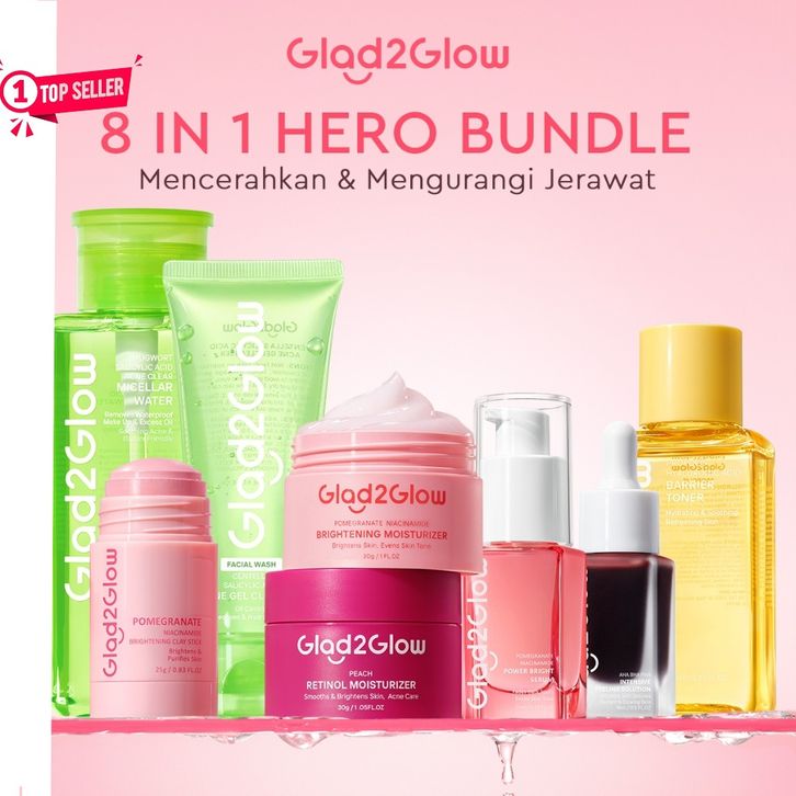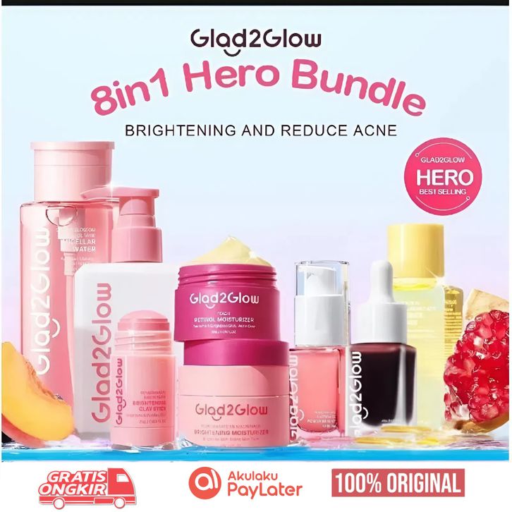 [Mall] GLAD 2 GLOW OFFICIAL STORE- Paket Lengkap Special Bundle 8 In 1 Skincare Wanita Glowing Bpom G2glow Sepaket