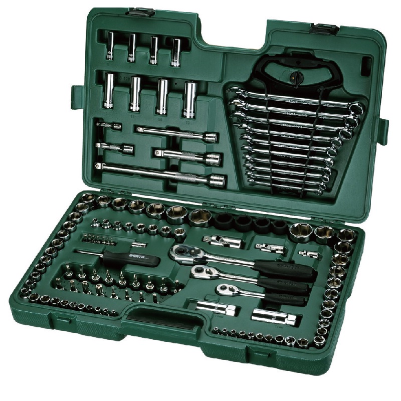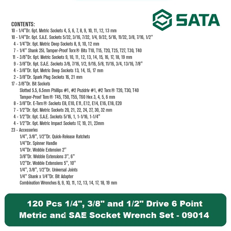 SATA Tools 120 Pcs 1/4", 3/8" and 1/2" Drive 6 Point Metric and SAE Socket Wrench Set