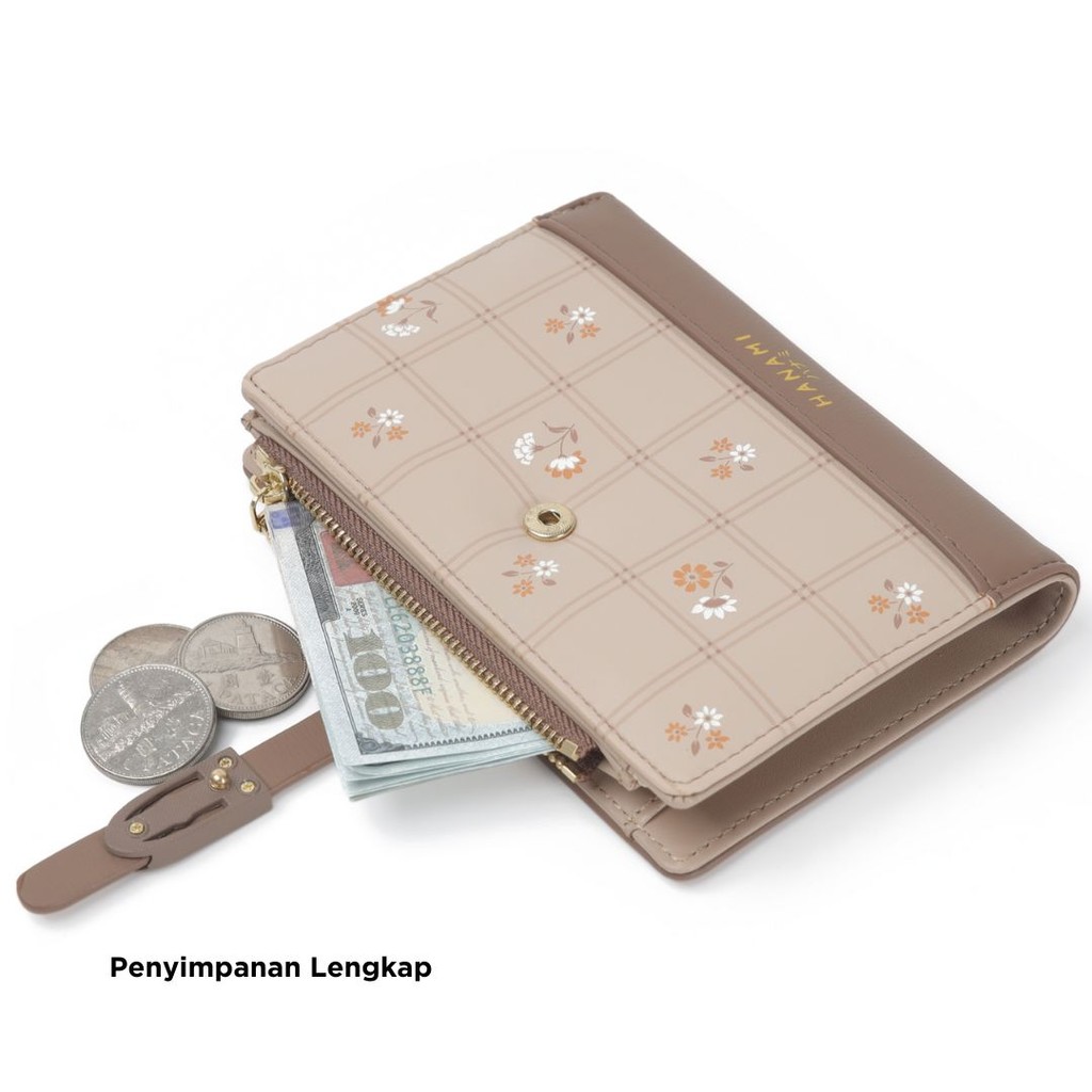 HANAMI Dompet Lipat Wanita Kekinian Kulit Coklat Kecil Winlara Terbaru Simple Aesthetic WA871C3