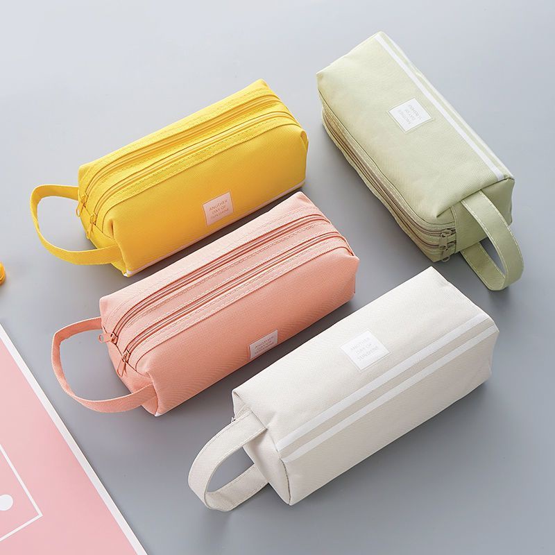 T&Y Kotak Pensil Stationery Dual Zipper Dompet Pensil 2 Pouch Dua Sisi Resleting Tempat Alat Tulis Perlengkapan Sekolah