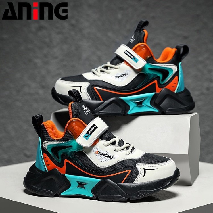 Sepatu Sneakers Anak sepatu anak laki Lembut Running Kets Casual Model Tali Velcro Bernapas Ukuran 28-37ANINGAINGBOY