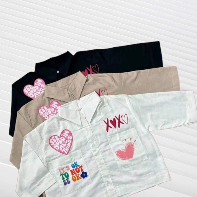 Kemeja Crop See Good XOXO Kiri kanan Kantong