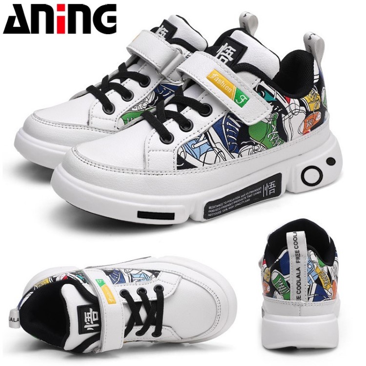 SEPATU ANAK-ANAK SNEAKERS WARNA HITAM PUTIH MOTIF KARTUN ANEKA UKURAN UNTUK SEPATU ANAK LAKILAKI ANING ANINGBOYTERBARU