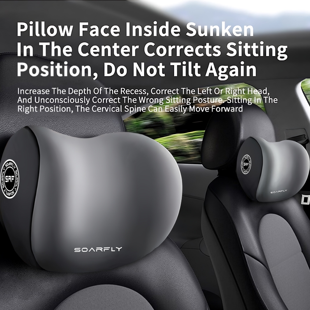 SOARFLY Bantal Mobil Mewah Sandaran Leher Punggung Big Memory Foam Kulit Premium Bantal Berkualitas Bantal Leher Mobil