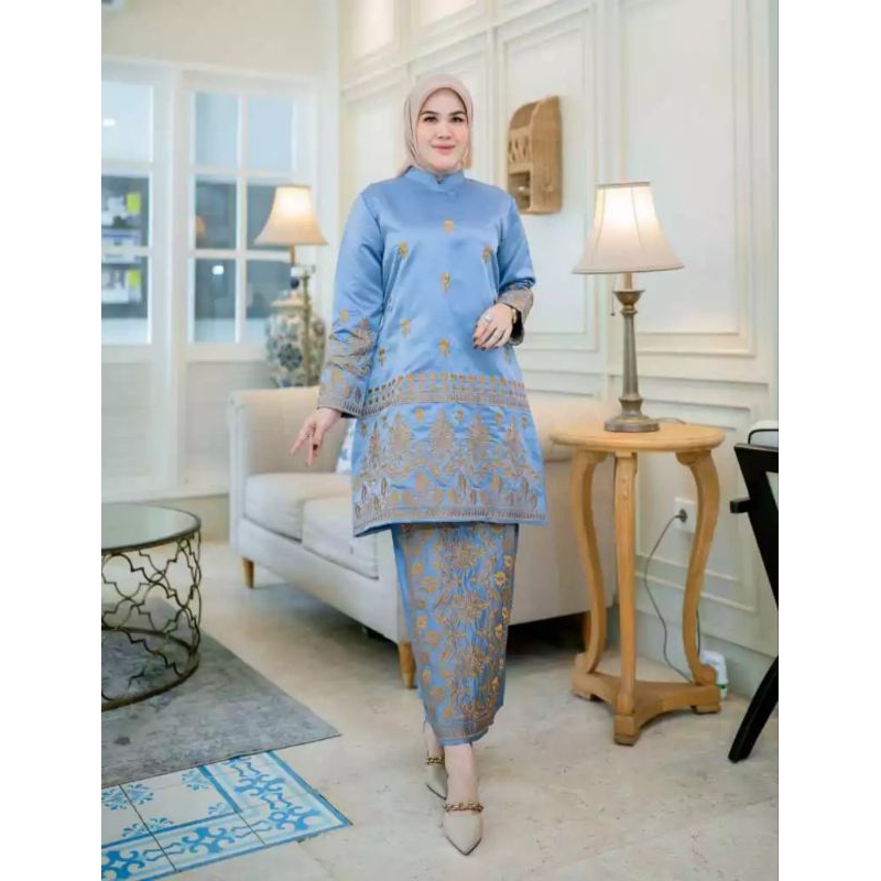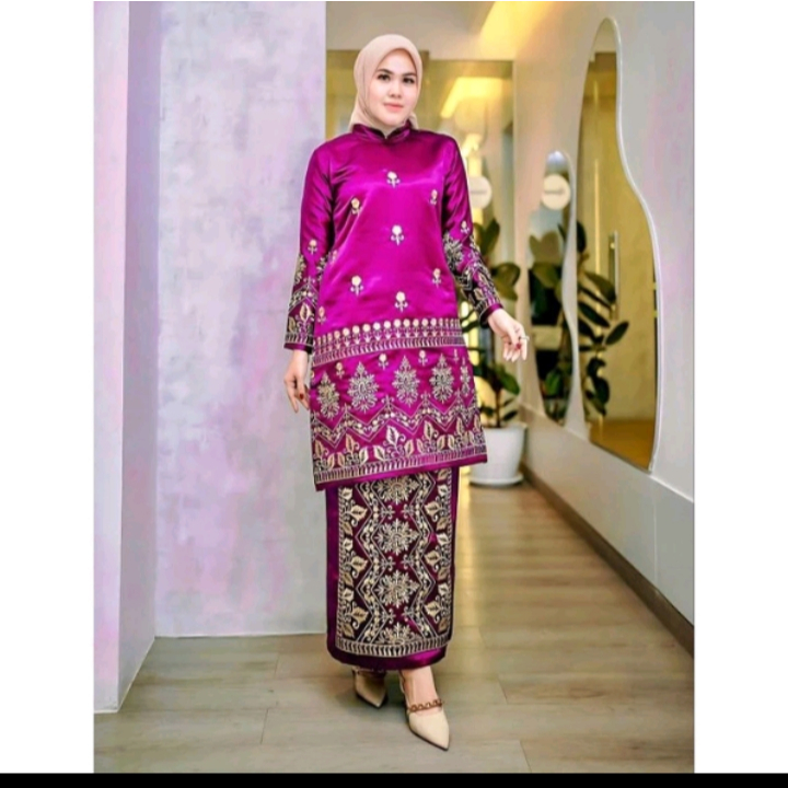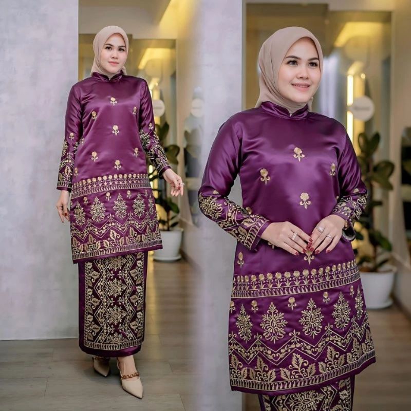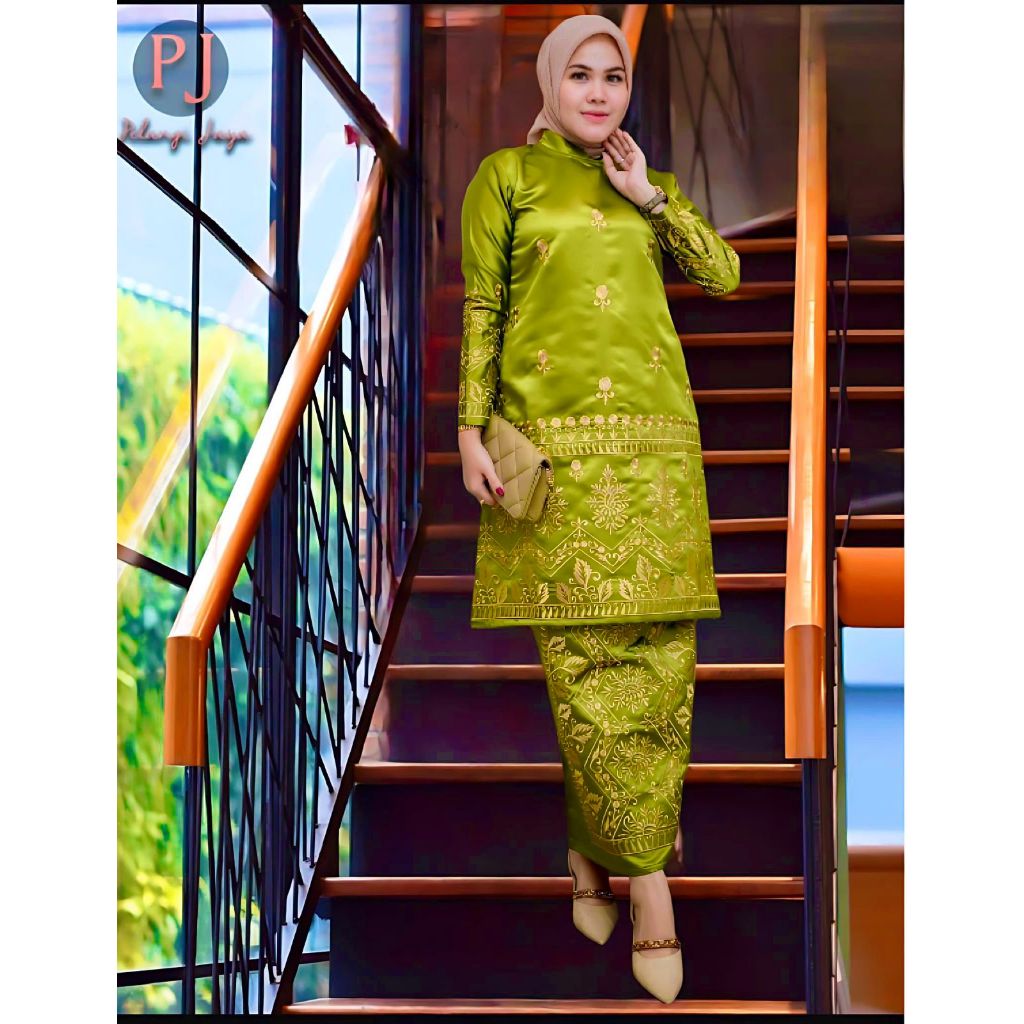 Satu Set Kebaya Tunik Kurung Bordir Melayu Kebaya Kurung Malaysia Kebaya Seragam Kondangan Terbaru(Jumbo LD 130)