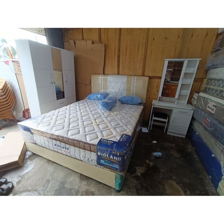 Paket lamaran, kasur springbed bigland plustop 3zone+divan standar+lemari 3 pintu & meja rias rz